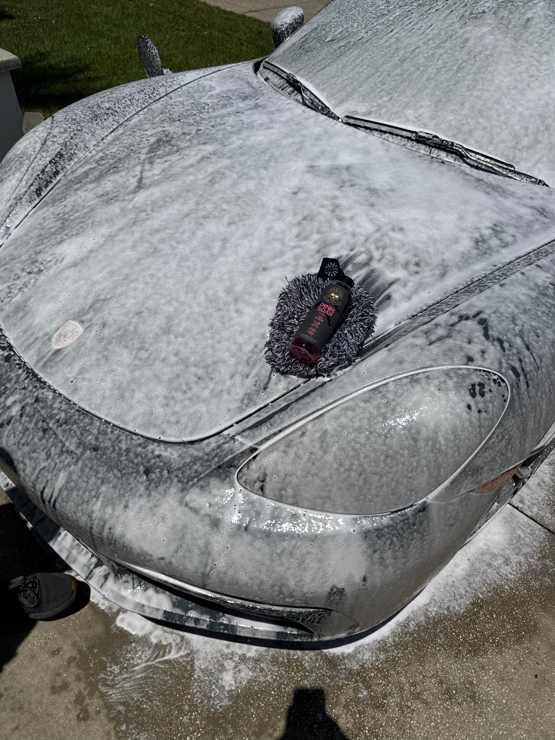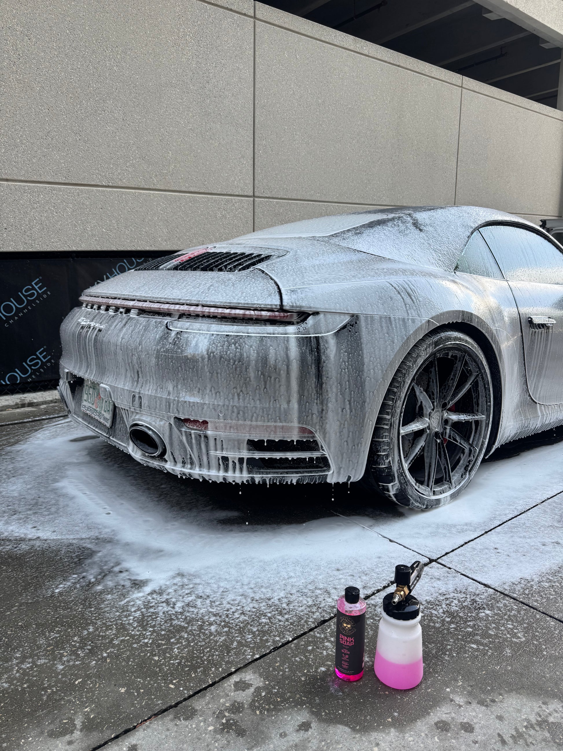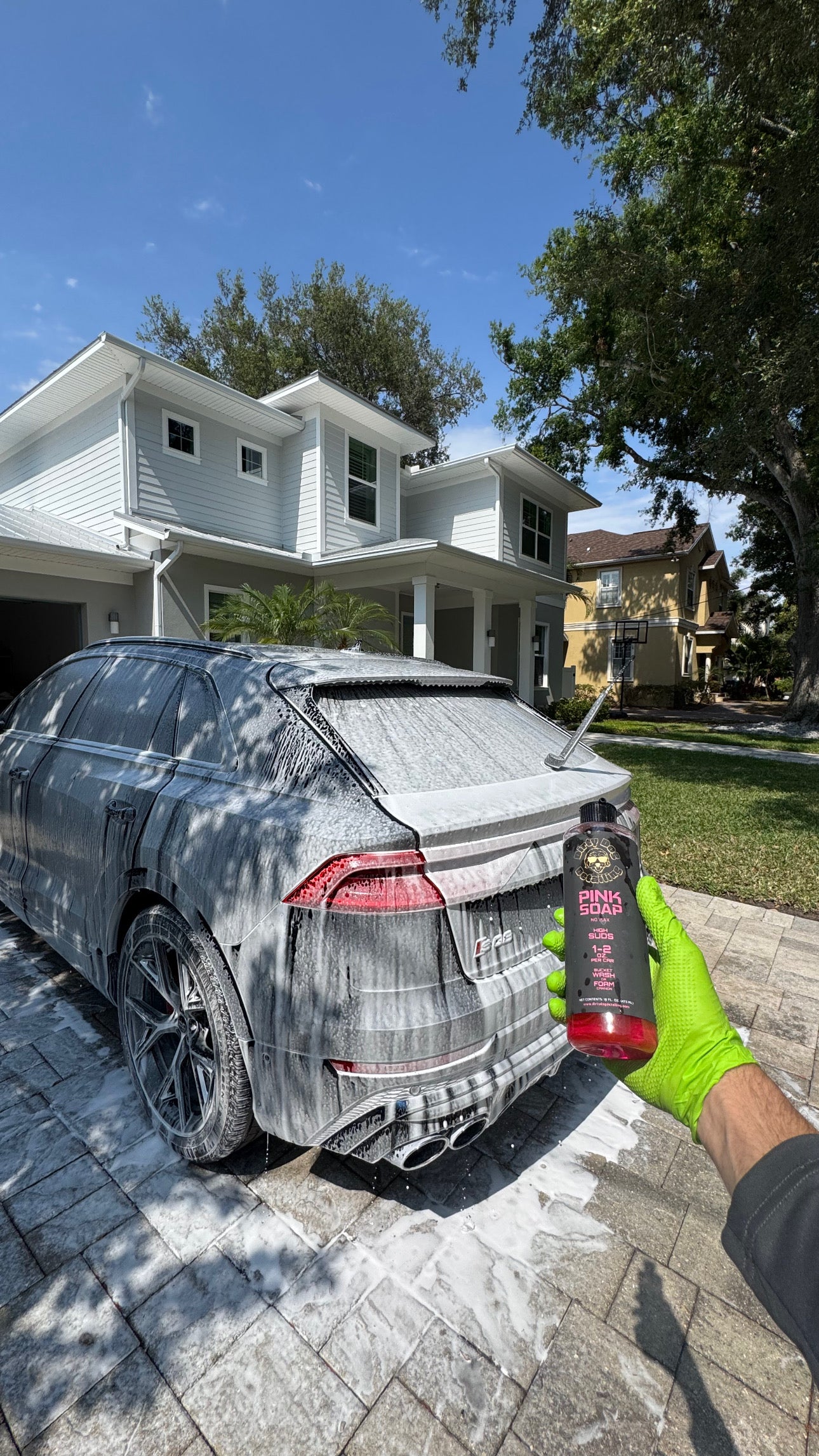 This pH-neutral high-foaming car soap is a necessity. This premium car soap produces intense foaming action. It can help clean away grease, bugs, oil, and road film from paint, glass and chrome surfaces. This soap will clean and enhance your paint's shine and can be used in both foam cannons and buckets. Ready to use.